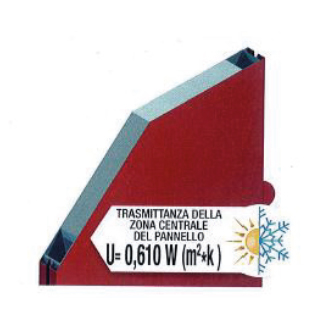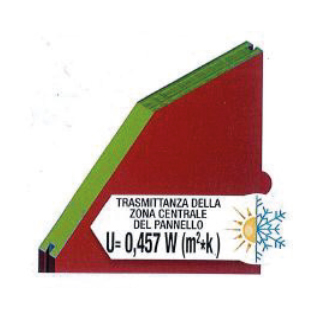 Panel strukturor me spesor 52 mm izoluar me shkumë poliuretanike e injektuar me dendësi të barabartë më 43kg/mk (vlera U qendrore homogjene 0.457 Ë/ mk K)