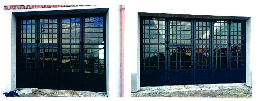 Pamje e jashtme e portës libër me hapje dyshe me kangjella special të salduara.