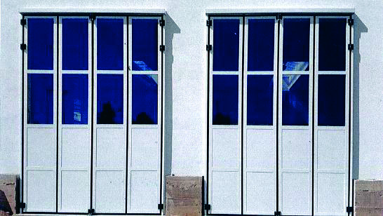 Pamje e jashtme e portave libër me hapje dyanëshe 2+2 dyer.